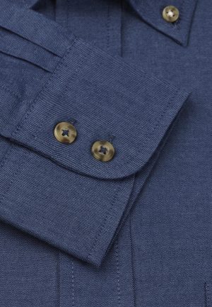 Plain Navy Twill Peached Cotton Button Down Collar Shirt