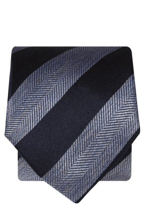 Navy And Blue H’Bone Stripe 100% Silk Tie