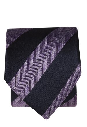 Navy And Purple H’Bone Stripe 100% Silk Tie
