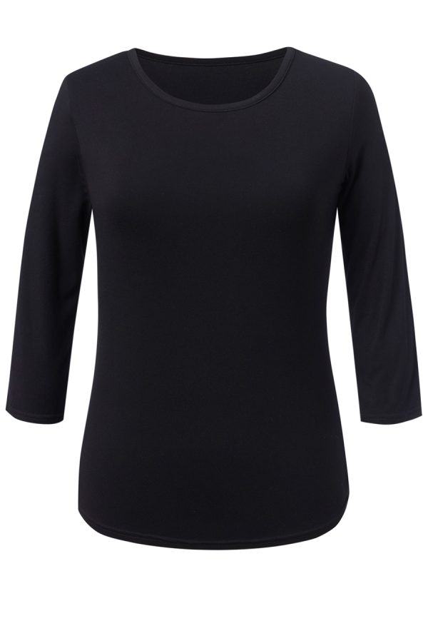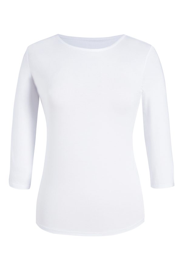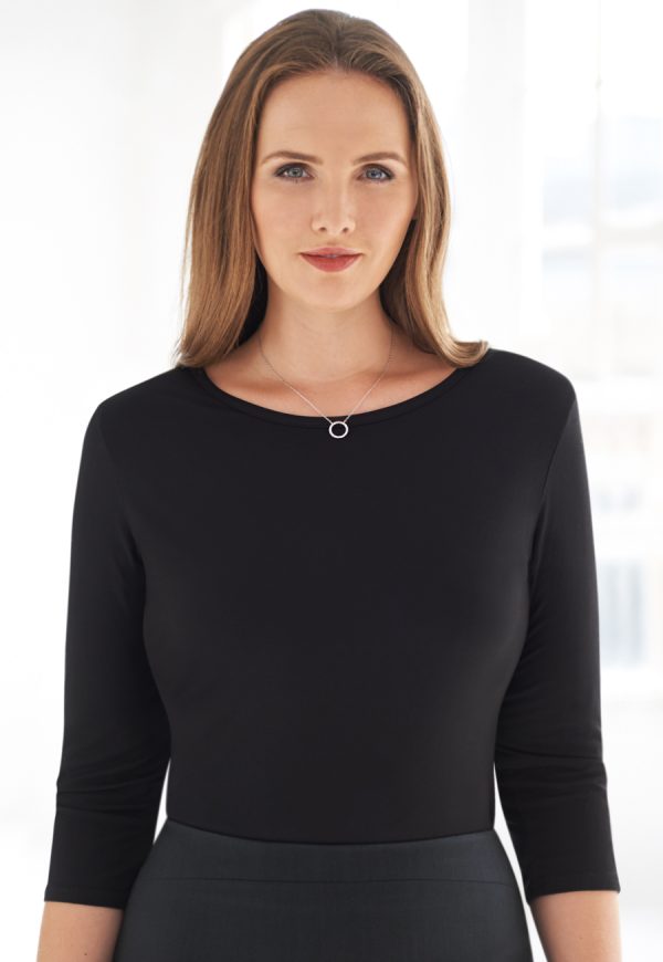3/4 Sleeve women’s stretch top, rounded neckline