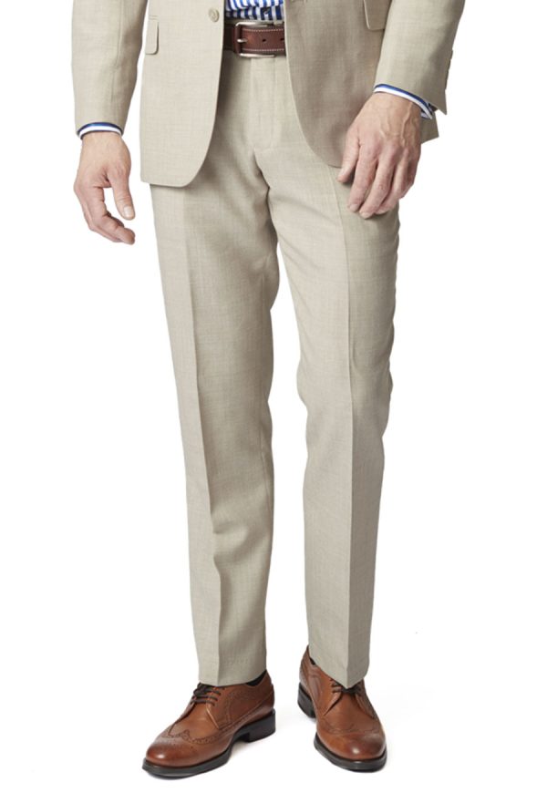 Half lined. Plain front trousers. Belt loops. Comfort waistband. Clasp fastening with French bearer. Pressed with crease.