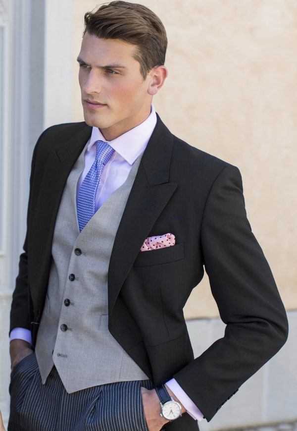 Edge to edge, link button, centre vent, double breasted lapel, 4 button cuff, out breast welt, covered buttons, classic fit