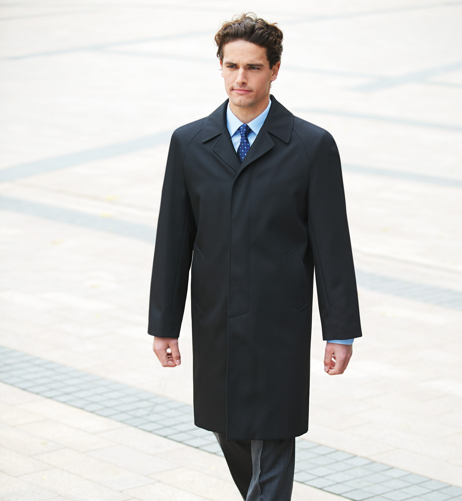 Single breasted, 3 button fly front, centre vent, raglan sleeve, viscose check lining.
